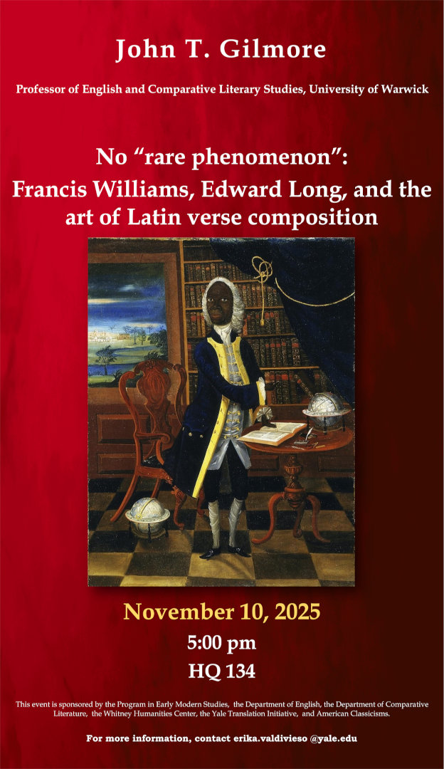An American Classicisms lecture by John T. Gilmore (University of Warwick), co-sponsored by the Program in Early Modern Studies, the Department of English, the Department of Comparative Literature, the Whitney Humanities Center, and the Yale Translation Initiative.